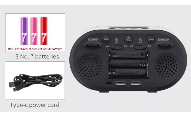 6. Крыніца харчавання: кабель Type-c або 3*AA 1.5V батарэйкі