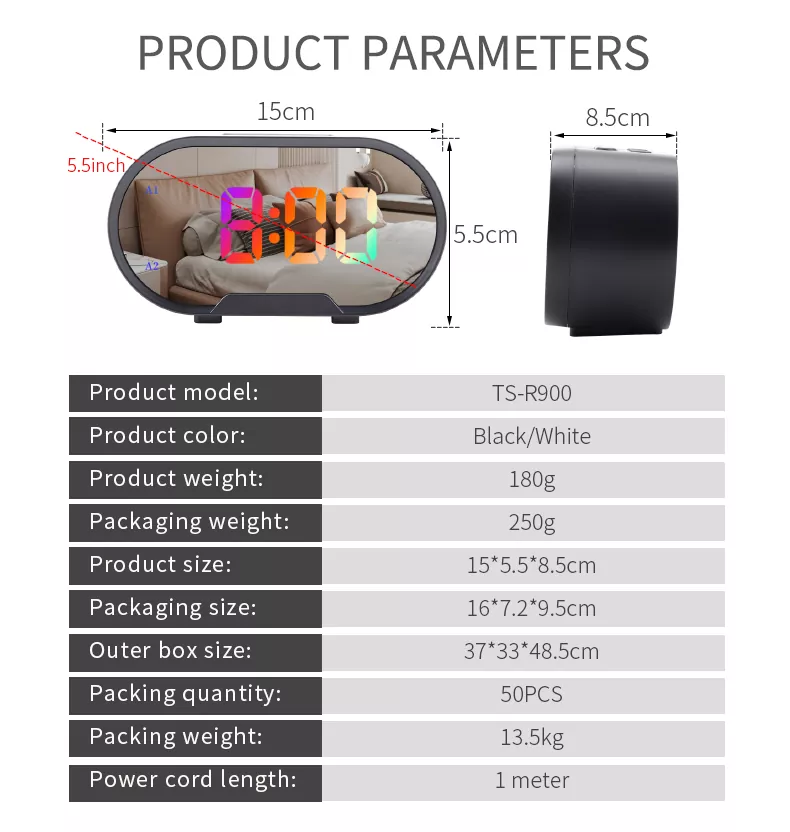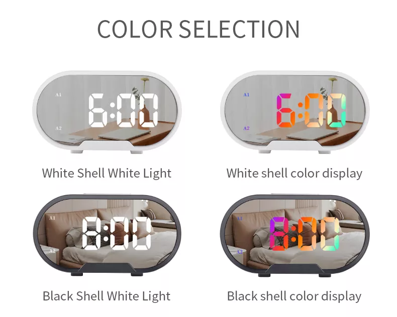 Каляровы святлодыёдны дысплей RGB, настольны люстэрка-будзільнік