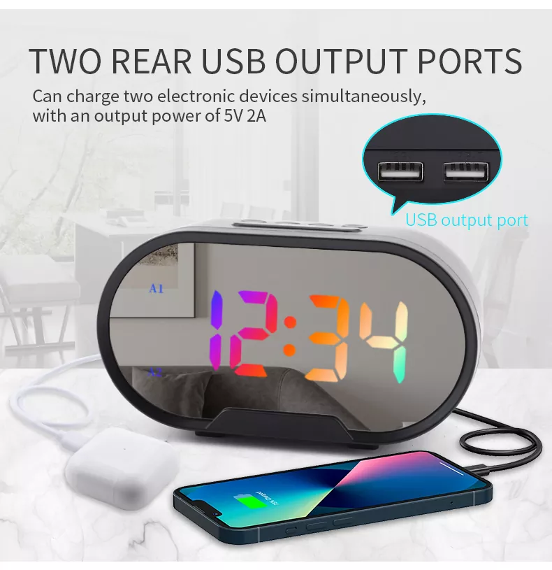 Люстэрка Святлодыёдны порт Уваход Выхад Святлодыёдны настольны будзільнік
