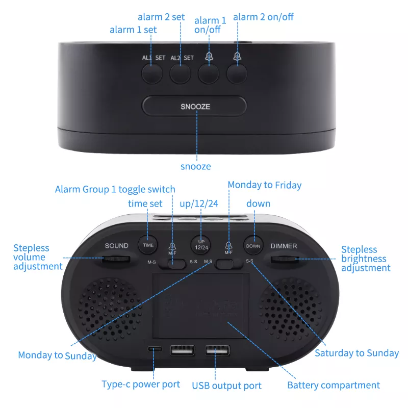 Люстэрка Святлодыёдны порт Уваход Выхад Святлодыёдны настольны будзільнік